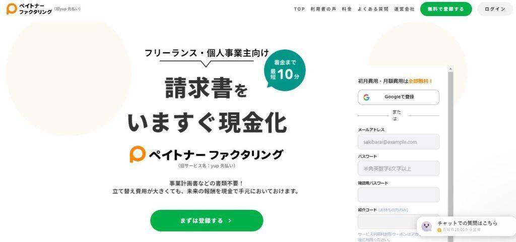 ✅請求書の情報を入力後、最短10分入金 ✅手数料が一律10%でわかりやすい ✅決算書や事業計画書が不要 ✅開業直後でも利用しやすい | ⚠️買取上限額が低い(初回は30万円まで) ⚠️法人の高額な資金調達には使えない |