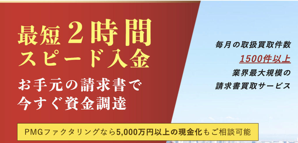 ①PMGファクタリング:5,000万円以上にも対応!