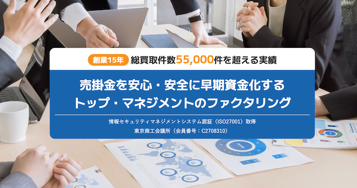 ✅24時間365日いつでも相談・申込可能 ✅土日も対応 ✅売掛先が個人事業主の債権もOK ✅必要書類が少なく、手続きが簡単 ✅審査が柔軟で、個人事業主にも強い | ⚠️即日入金には、日中の早い時間帯での申込が必要 ⚠️会社の状況によっては追加の書類を求められる |