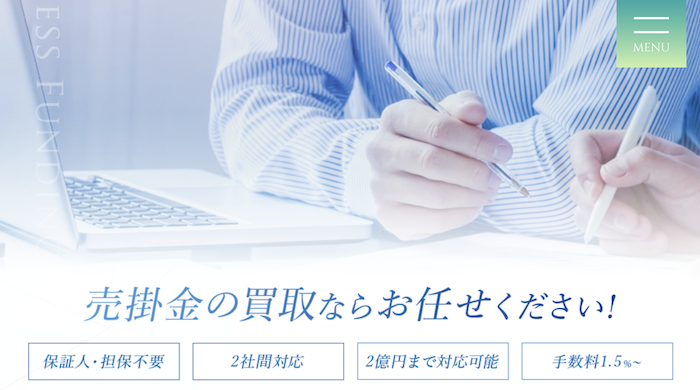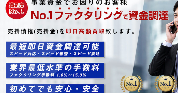 ✅最大2億円という高額案件に対応できる ✅契約・送金まで最短2時間対応 ✅法人に特化 ✅全国対応 ✅赤字決算でもOK | ⚠️少額の利用には不向きな場合がある ⚠️手数料提示が曖昧 ⚠️個人事業主の審査はやや厳しい傾向 ⚠️土日祝日は対応していない |