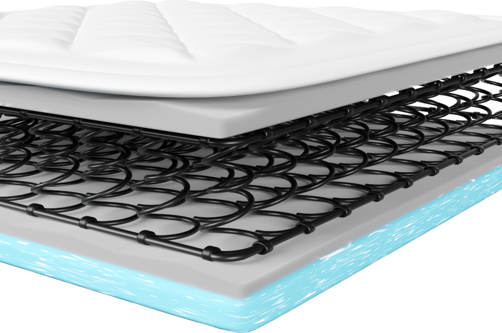 コイルがワイヤーで連結された「面」で体を支える構造のマットレス。昔ながらのコイルマットレスに多い方式です。