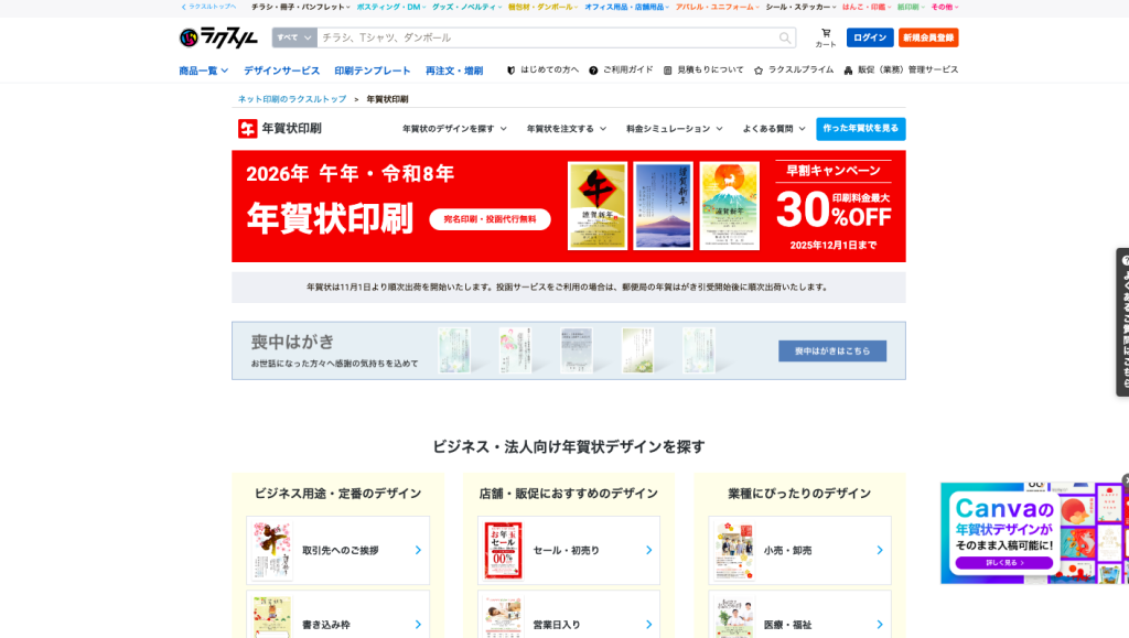 文章やレイアウトもビジネス向けに対応しており、会社名や部署名を入れた正式な挨拶文を選ぶことが可能です。また宛名印刷や投函代行に対応しているサービスもあり、年末の業務が忙しい中でもスムーズに手配できます。
