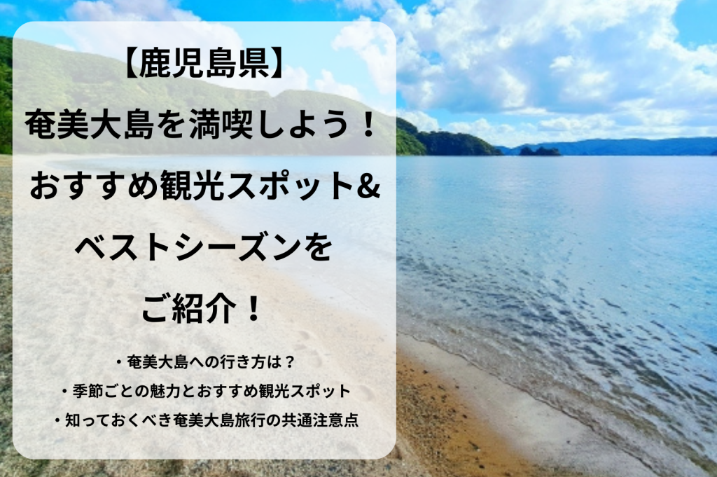 鹿児島県にある奄美大島は透き通るような青い海と手つかずの大自然が広がる、まさに南国の楽園。世界自然遺産にも登録され、近年ますます注目を集めています。 「奄美大島っていつ行くのがベスト?」「どんな観光スポットがあるの?」と気になっている方も... -