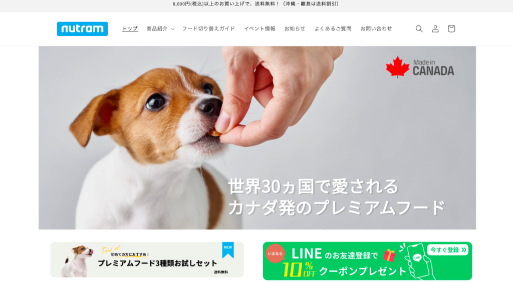 商品ラインナップは全8種類あり、小型犬から大型犬まで対応。愛犬の体格や健康状態、目的に合わせて選べる点も魅力です。さらに公式サイトでは、8,000円以上の購入で送料無料となるサービスも提供されています。