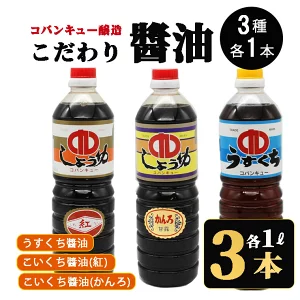 国産 九州 こだわり醤油 3種3本セット 3本×1000ml 【かんろ1本 紅1本 薄口1本】