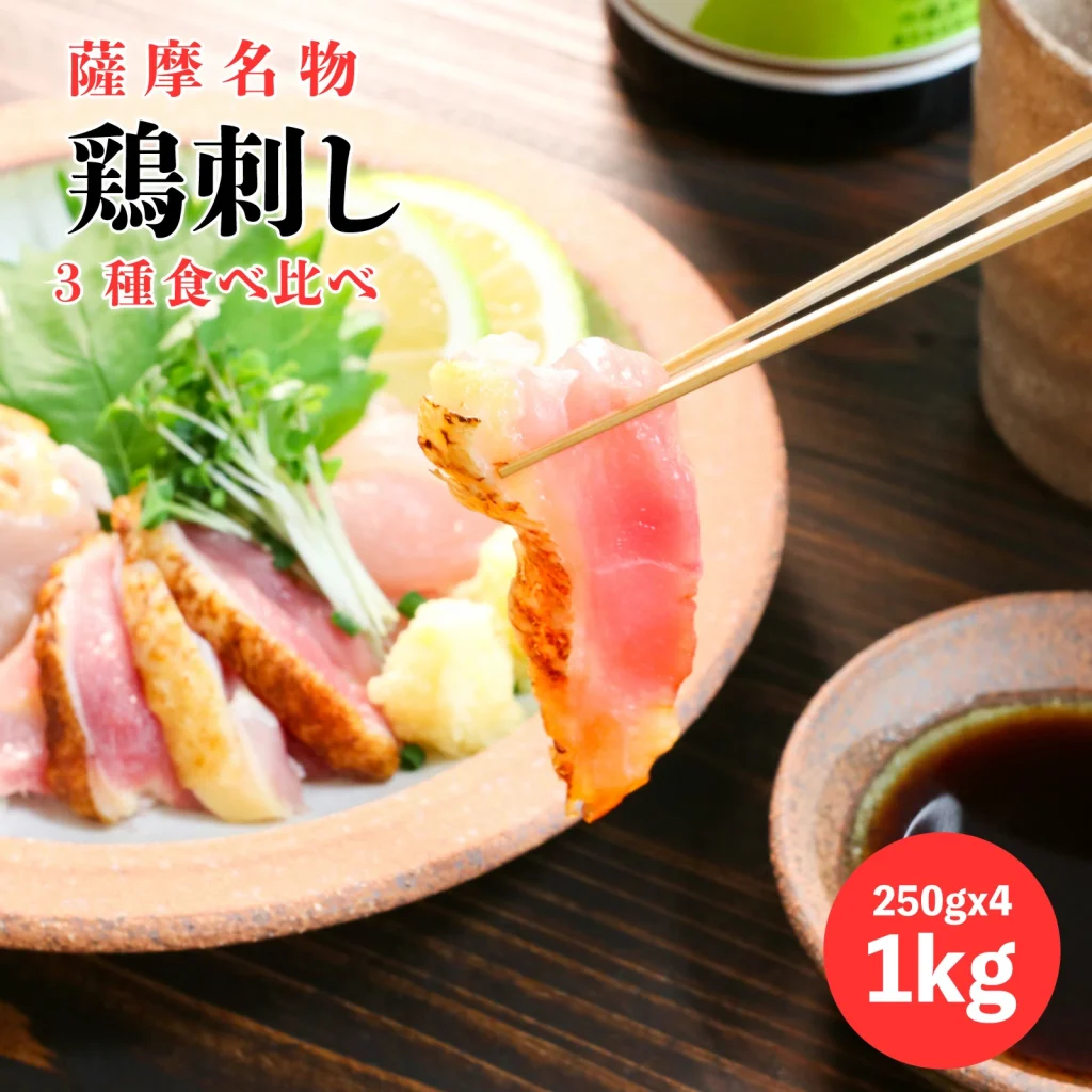 薩摩名物 鳥刺し ( モモ ムネ ささみ )たっぷり 1kg( 250gx 4 )
