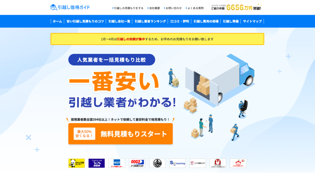 提携している引越し業者の数が多いサイトほど、料金やサービスの比較幅が広がります。