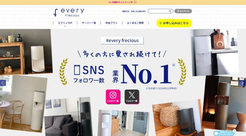 水道水を利用する浄水型サーバーの中でも高い支持を集めているのが「エブリフレシャス」です。最大のメリットはボトルの受取や保管、交換といった「水にまつわる手間」をすべて解消できる点にあります。