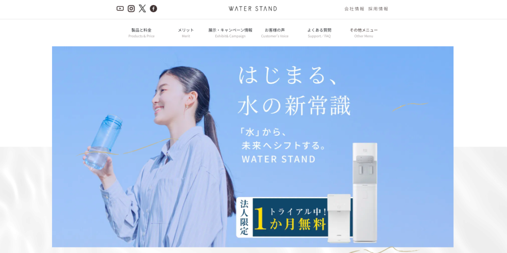 ウォーターサーバーの利便性とコストパフォーマンスを両立させたのが「ウォータースタンド」です。全13種類の多彩なラインナップを展開していますが、中でも「アイコン」は水道直結型で契約台数No.1(※1)の実績を持つ主力モデルです。