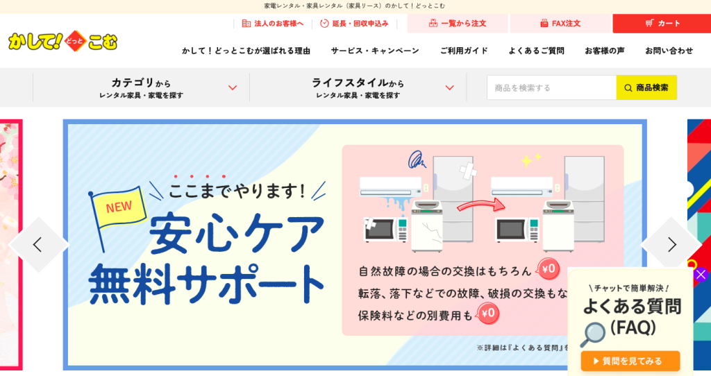 支払い方法は初期費用を抑えたい方や利用期間が未定の方向けの「サブスク型」と、使用期間が決まっている方向けの「一括払い」から選択可能。さらに利用中に家電が故障した場合でも追加料金なしで修理・交換に対応してもらえる点も安心です。