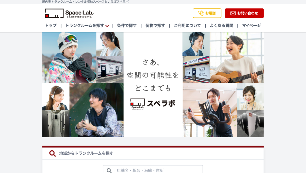 スペラボは東京23区を中心に60店舗以上・約2,000室の収納スペースを展開する、屋内型トランクルームサービスです。「清潔さ・スピード感・手頃な価格」のバランスが良く、はじめてトランクルームを利用する方にも選ばれています。
