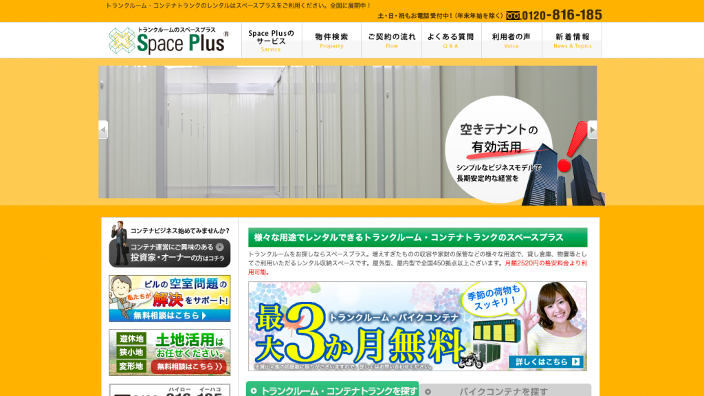 スペースプラスは株式会社ランドピアが運営する全国展開のトランクルームサービスです。都市部から地方エリアまで幅広く拠点を持っており、引っ越しや転勤が多い方でも利用しやすいのが大きな魅力です。