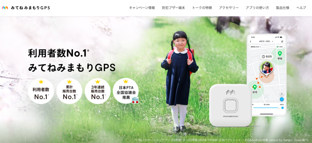 みてねみまもりGPSトークは写真・動画共有アプリでおなじみの「みてね」が提供する、音声メッセージ機能付きの見守りGPSです。2024年に登場した比較的新しいモデルで、これまでの「居場所を確認するだけ」のGPSから一歩進み、親子で声のやり取りができる点が大きな特徴です。