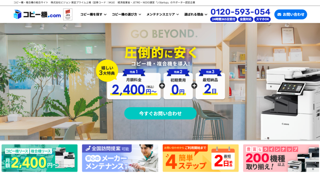 コピー機.comはレンタルだけでなくリース契約や中古機の購入など複数の導入方法に対応しているサービスです。企業の予算や利用スタイルに合わせて最適なプリンター・コピー機の導入方法を選べる点が大きな特徴です。