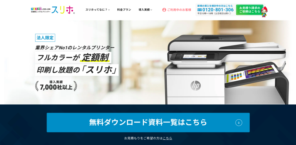 スリホは業界シェアNo.1の定額制レンタルプリンターサービスです。
