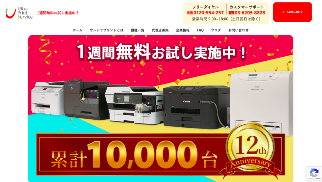 ウルトラプリントは定額制レンタルプリンターのパイオニアとして知られ、長年の運営実績と高い信頼性を持つサービスです。業界・業種を問わず幅広い企業が導入しており、豊富な実績に基づいた安定したサポート体制が魅力です。