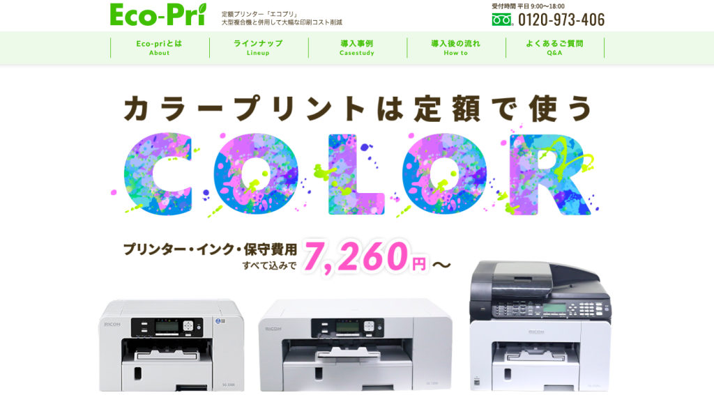 取り扱っている機種の種類も非常に豊富で、印刷の仕上がり品質、月間の印刷枚数、設置スペース、オフィスの規模などさまざまな条件を踏まえて最適な機器を選ぶことができます。ただし詳細な料金はサイト上に明記されていないため、見積もりやプラン内容は問い合わせが必要になります。とはいえスタッフが丁寧に対応してくれるため、不明点を相談しながら安心して検討できます。