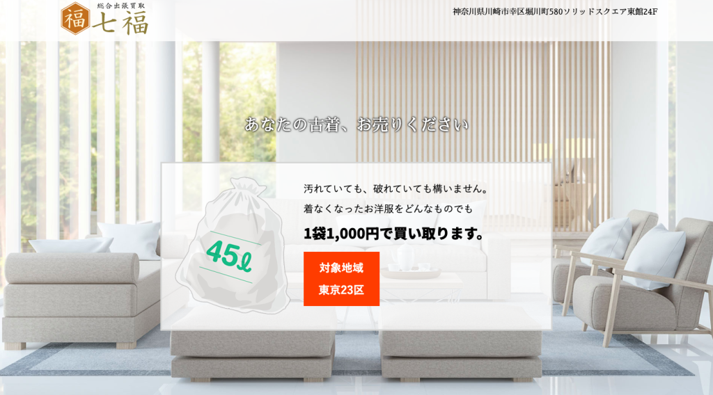 ブランドや状態を問わずどんな洋服でも買い取ってくれるため、衣替えや断捨離、クローゼット整理をしたい人にぴったりのサービスです。破れ・汚れ・ほつれ・色落ちといったダメージがあってもOKで、45L袋に詰めた洋服を1袋1,000円で買取してもらえます。