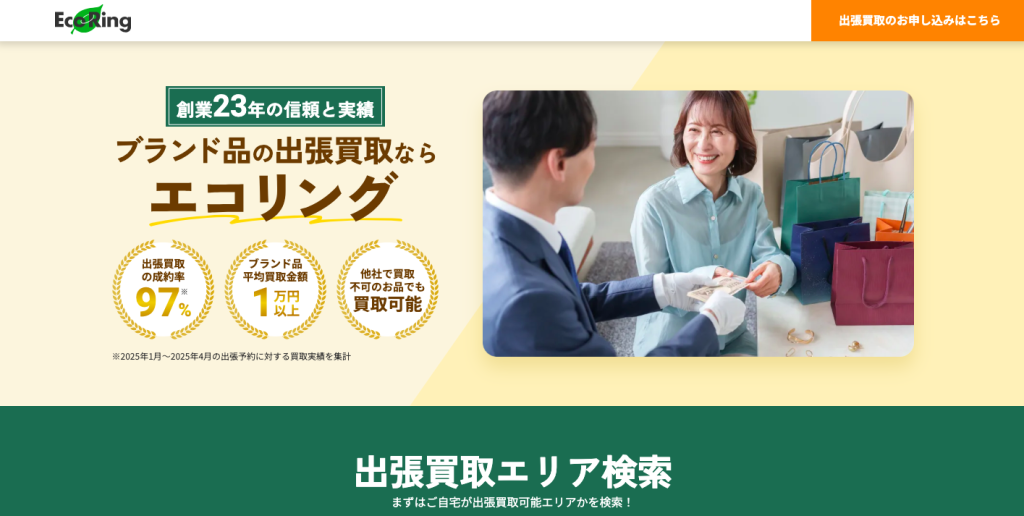 エコリングはブランド品・貴金属・不用品の買取を専門とするリユース店で、年間60万点以上の買取実績と全国300店舗以上の展開を誇る大手ならではの安心感が魅力です。